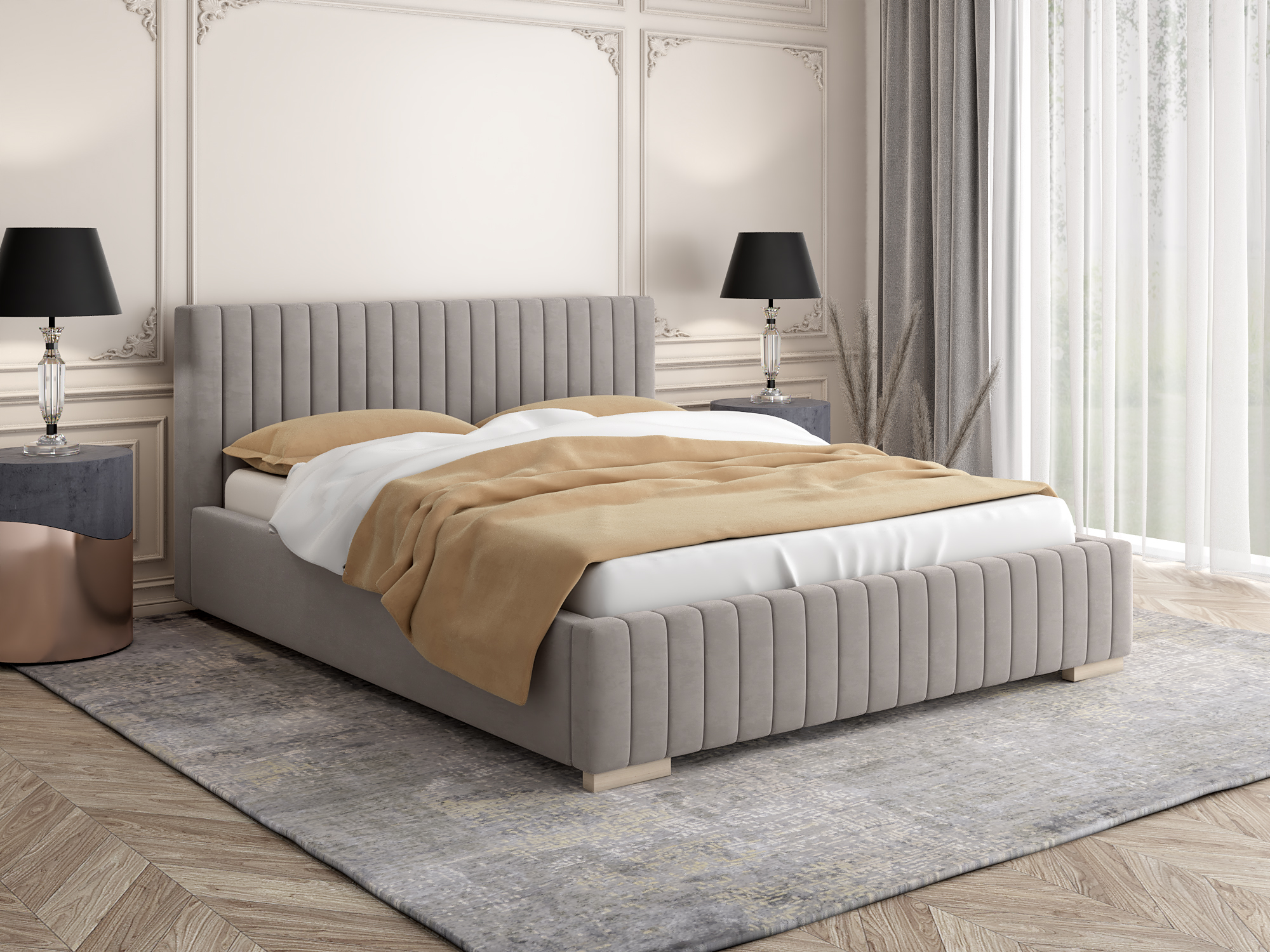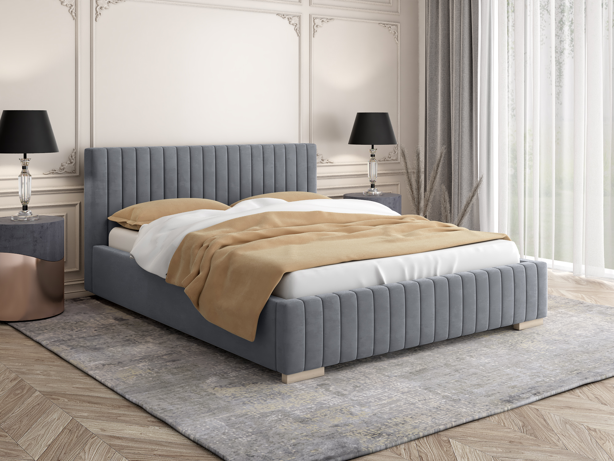 Łóżko tapicerowane MADRYT wpasuje się praktycznie w każdą sypialnię. Cechą charakterystyczną łóżka MADRYT jest gustownie wykonane wezgłowie, które wykończone zostało pionowymi przeszyciami. Łóżko to nabiera wyrazistego charakteru również dzięki pionowym przeszyciom na przednim jego panelu.