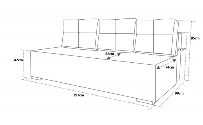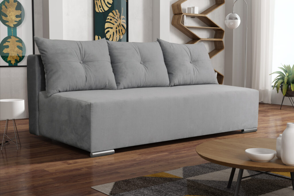 Kanapa z funkcją spania i pojemnikiem na pościel. Starannie wykonana z najwyższej jakości materiałów, z dbałością o każdy szczegół. Bardzo praktyczna i funkcjonalna. Konstrukcja została wykonana z wysokiej jakości surowców co zapewnia dużą stabilność i trwałość przez lata. Siedzisko i oparcie to połączenie płyty meblowej, pianki T28 oraz sprężyny typu bonel, charakteryzującej się bardzo dużym stopniem gęstości. Dzięki temu jest bardzo trwała – nie odkształca się, co daje duży komfort użytkowania mebli.
