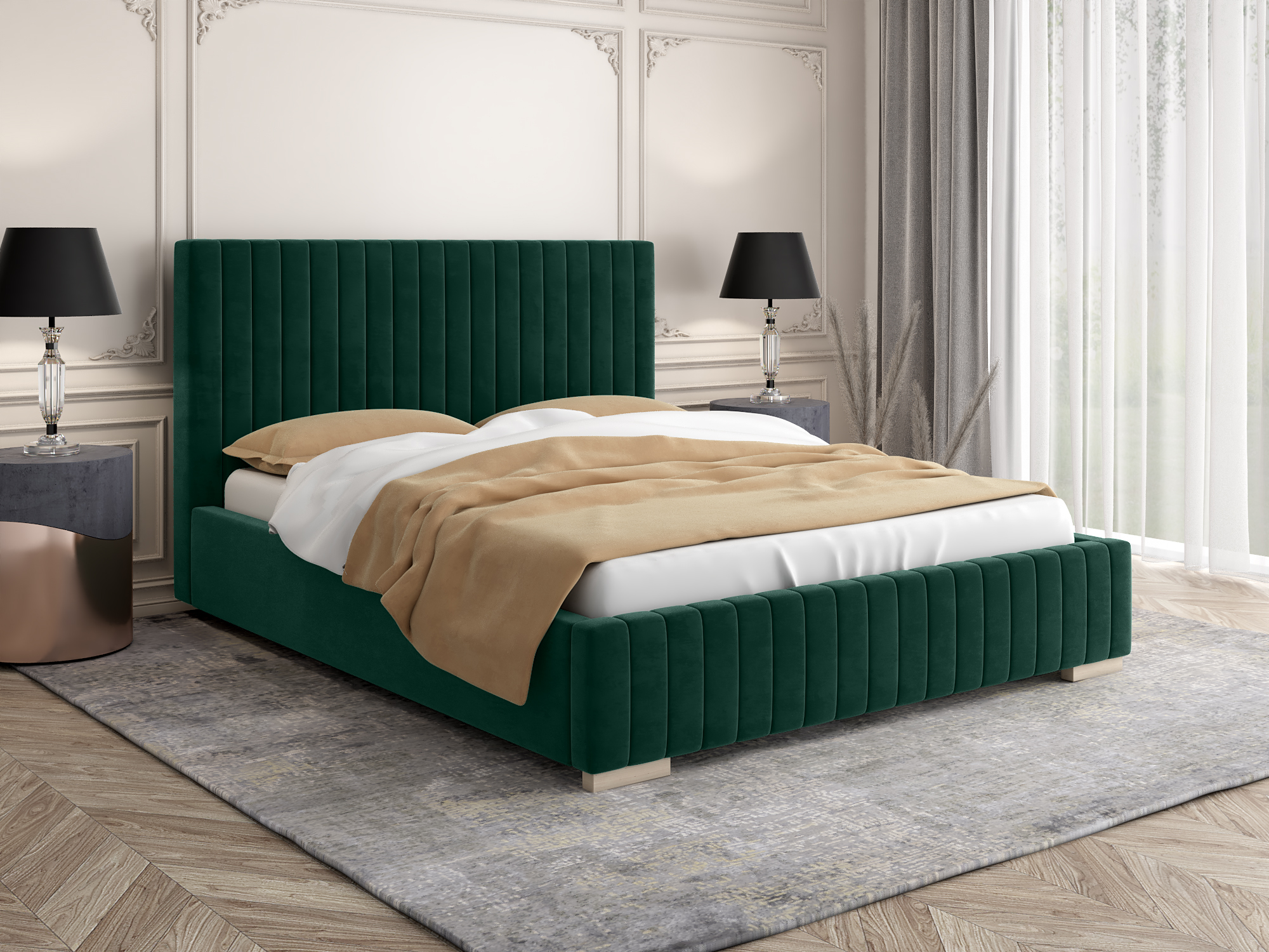 Łóżko tapicerowane MADRYT wpasuje się praktycznie w każdą sypialnię. Cechą charakterystyczną łóżka MADRYT jest gustownie wykonane wezgłowie, które wykończone zostało pionowymi przeszyciami. Łóżko to nabiera wyrazistego charakteru również dzięki pionowym przeszyciom na przednim jego panelu.