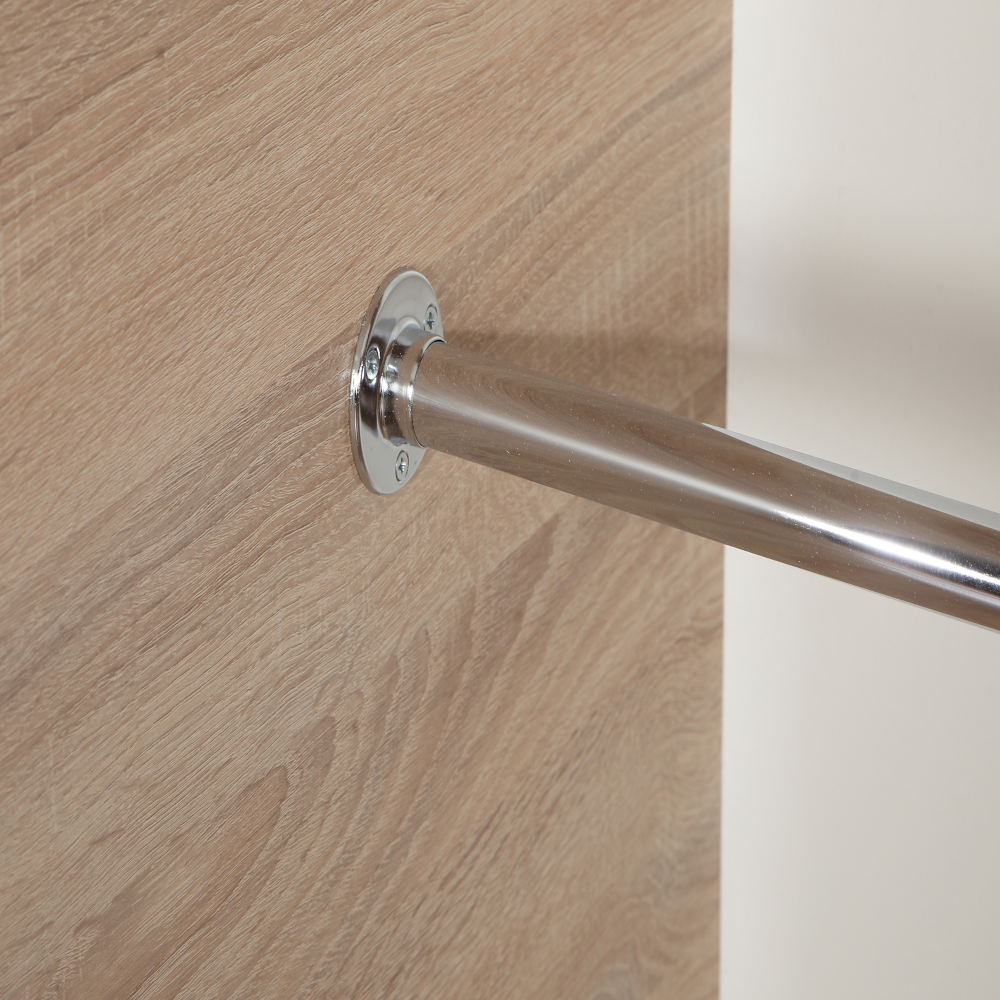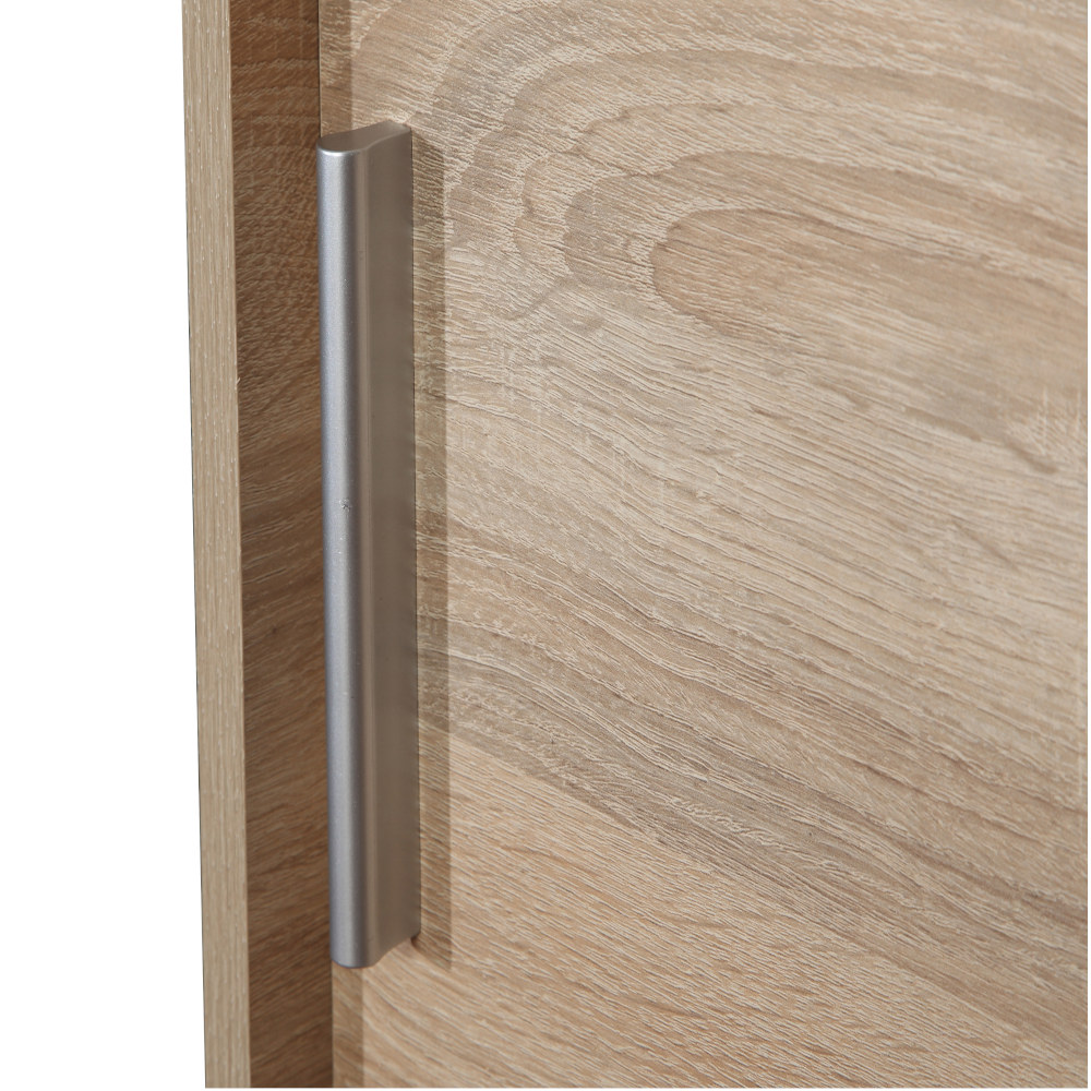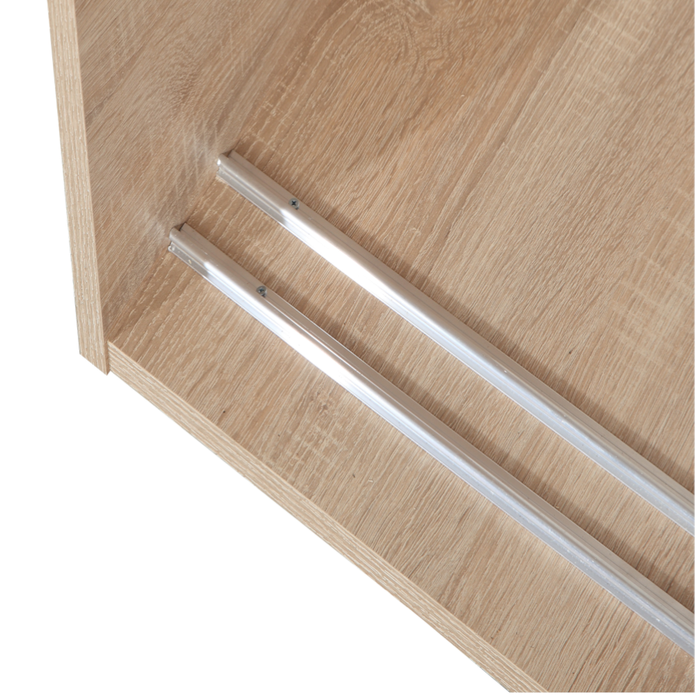 Szafa wykonana jest z płyty laminowanej o grubości 16mm. W cenie szafy są również dwa drążki chromowane okrągłe fi 25 oraz uchwyty plastikowe. Fronty są przesuwne i opierają się na nowoczesnym systemie MIKRA. System ten jest marki LAGUNA, posiada łożyskowane okucie dolne.
