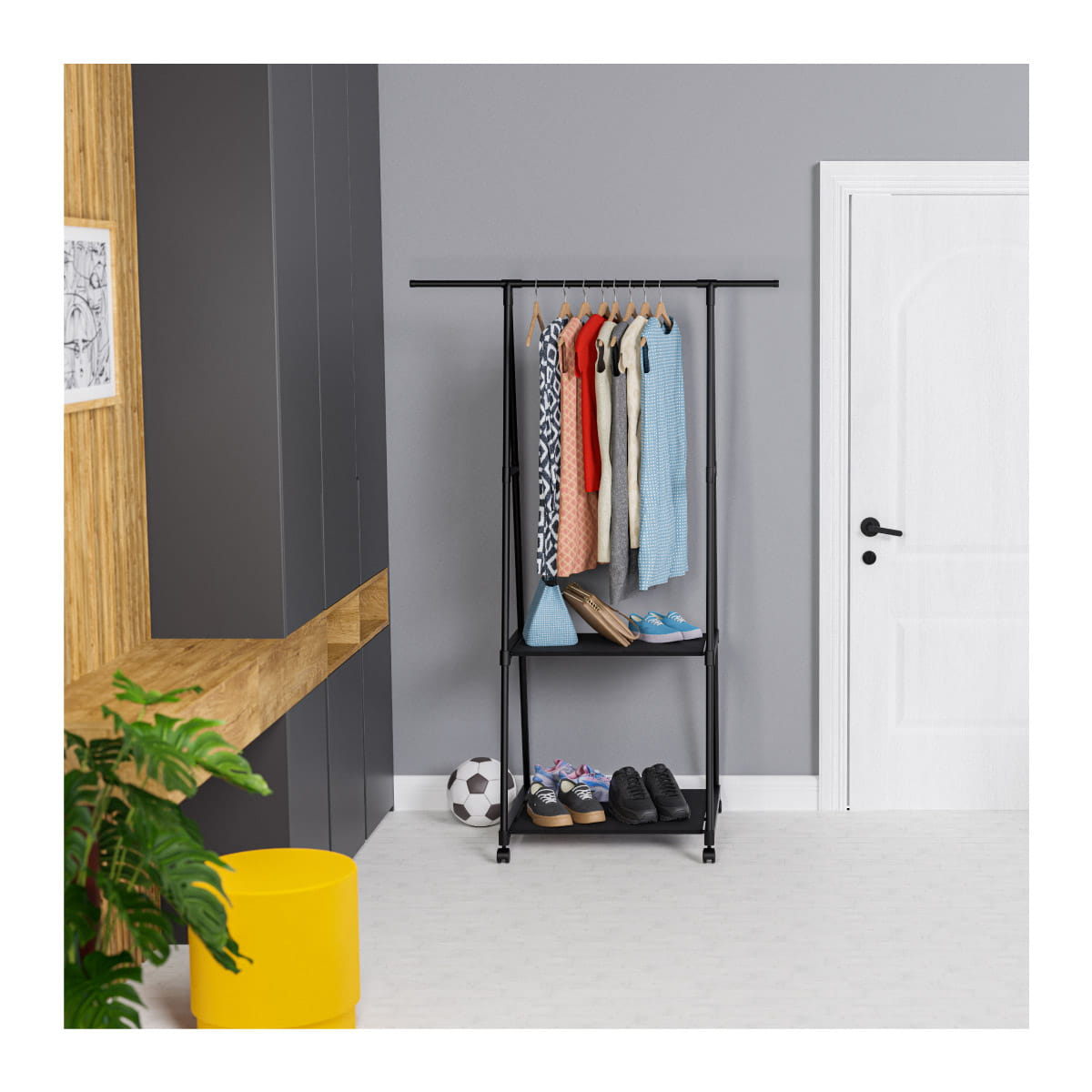 • Posiada praktyczne, płynnie działające kółka z blokadąWieszak na ubrania Mark Adler Keeper 1.5 w przedpokoju
