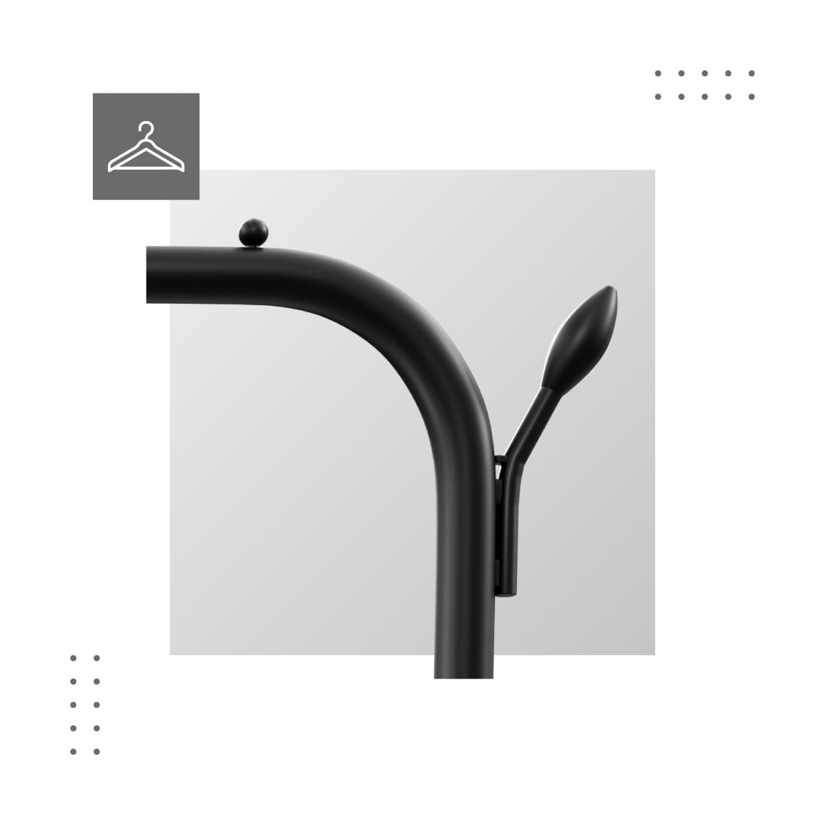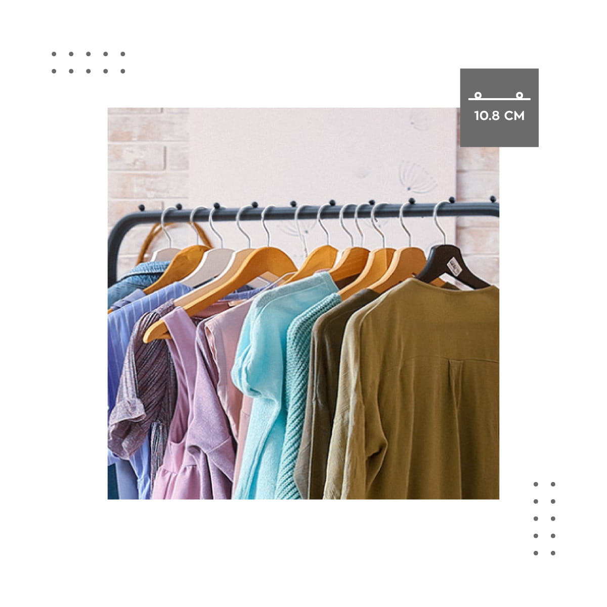 Umieszczone co niespełna 11 cm ograniczniki pozwalają zachować porządek wśród ubrań i wydzielają strefy stojaka. Dzięki nim ubrania nie gniotą się, nie zsuwają podczas przesuwania, a każdy wieszak ma swoje, wydzielone miejsce.  Dodatkowa przestrzeń na przechowywanie