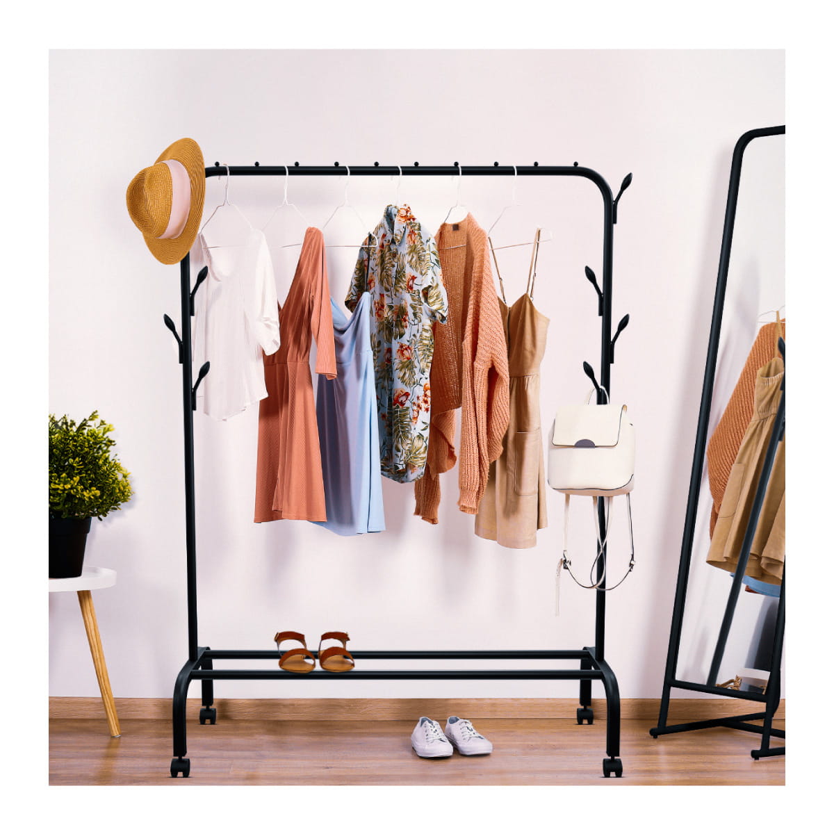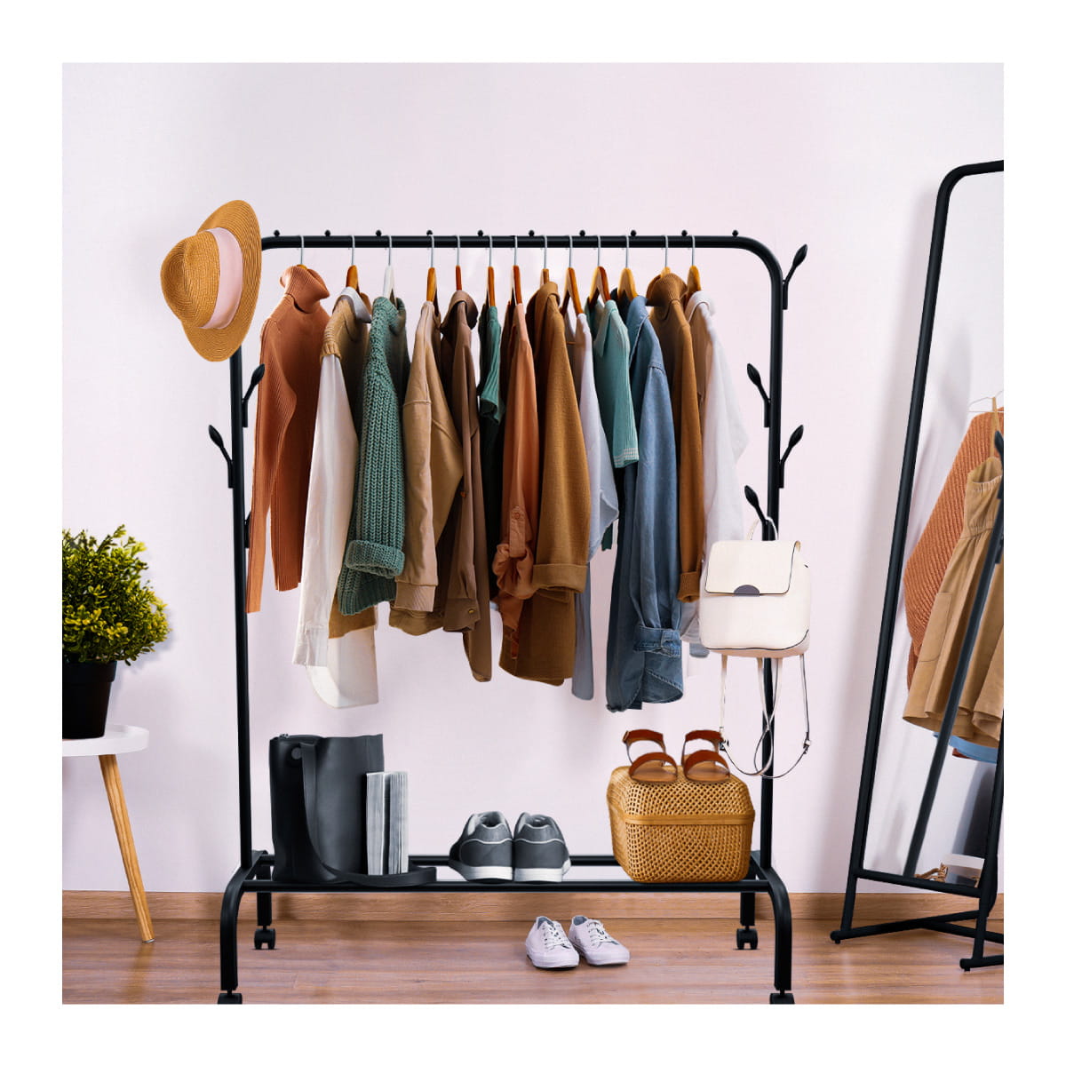 • Pojemny wieszak na ubrania i akcesoria